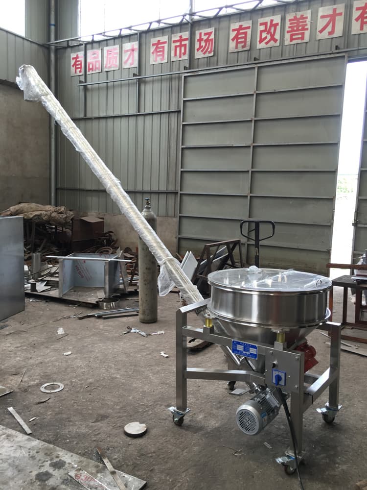 The machine uses motor to drive spiral rotation and to promote material to realize conveying.
