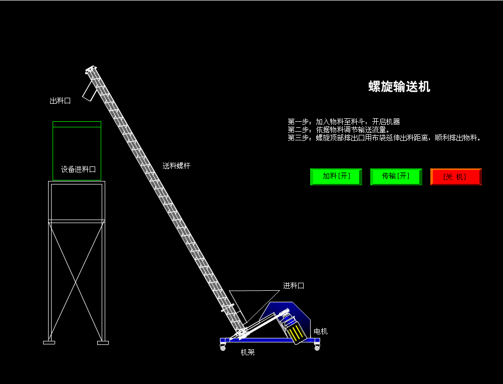 該機是利用電機帶動螺旋回轉,推動物料以實現(xiàn)輸送的機械。
