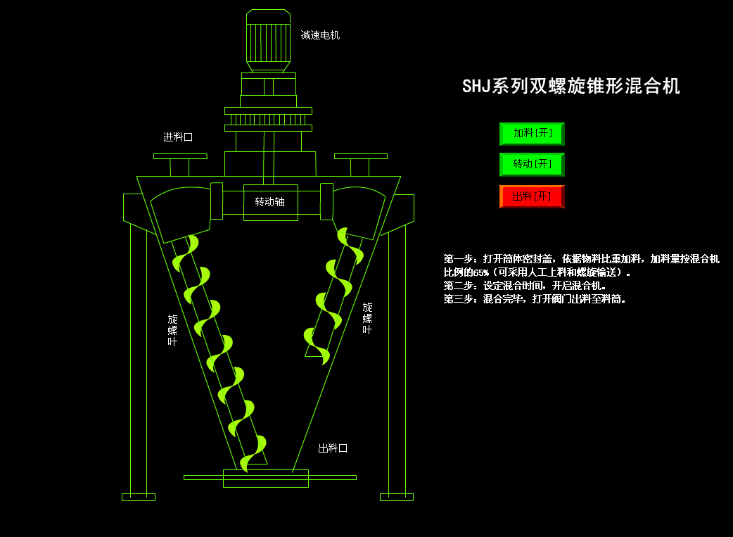 | 型號 | 料筒 | 裝料容積 | 裝料重量 | 混合時間 | 物料粒度 | 電機功率 | 外形尺寸(長×寬×高) | 重量 |